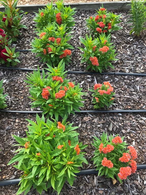 Plant material was supplied as rooted plugs. Plugs were transplanted to 10-cm pots and grown for 4 weeks. Finished plants were then transplanted and trialed in raised beds and fertigated as needed.
