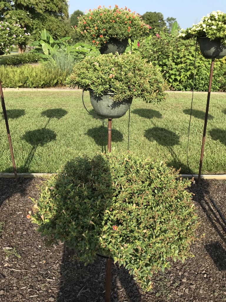 Plant material was supplied as plugs, which were transplanted into 10″ baskets in Pro-Mix. After 4 weeks they were moved to the trial garden and fertigated as needed.