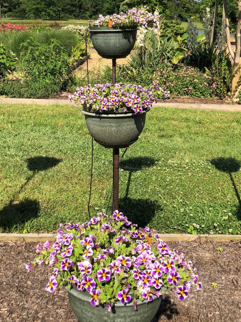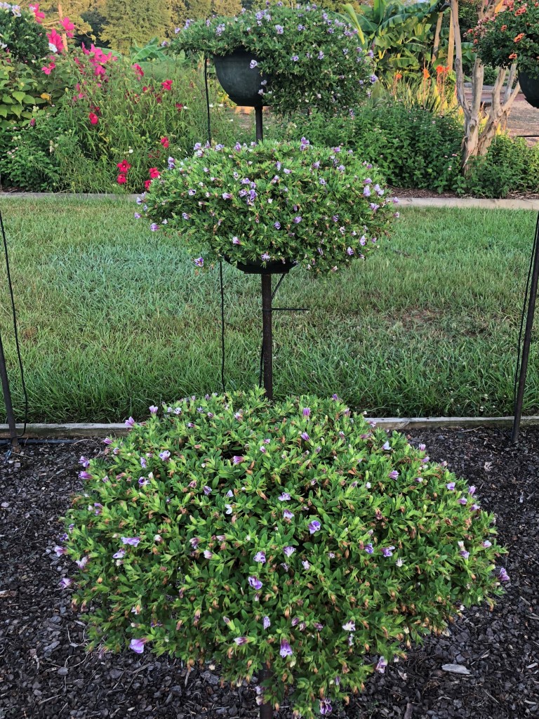 Plant material was supplied as plugs, which were transplanted into 10″ baskets in Pro-Mix. After 4 weeks they were moved to the trial garden and fertigated as needed.
